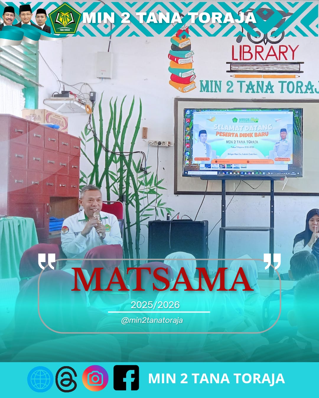 Gandangbatu Sillanan (Humas MIN 2 Tana Toraja) – MIN 2 Tana Toraja menyambut Tahun Ajaran baru dengan menggelar kegiatan Masa Ta’aruf Siswa Madrasah (MATSAMA) bagi peserta didik baru Tahun Ajaran 2025/2026, Senin 14 Juli 2025. Kegiatan ini berlangsung selama tiga hari, mulai Senin hingga Kamis, 14-16 Juli 2025 di lingkungan madrasah.![]()