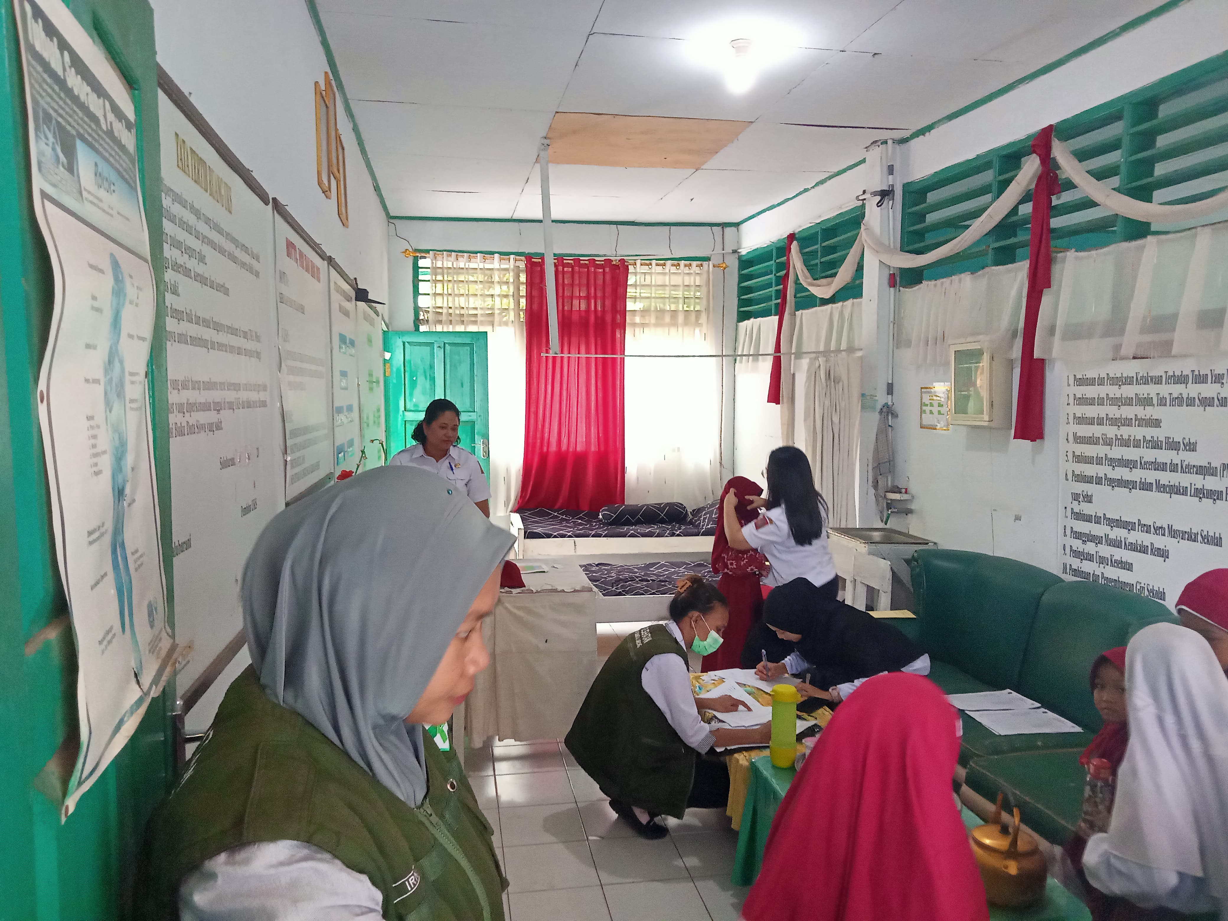 Petugas medis juga memberikan edukasi sederhana kepada siswa mengenai kebersihan diri, seperti cara mencuci tangan yang benar, menjaga kebersihan gigi, dan pentingnya sarapan sebelum beraktivitas di sekolah.