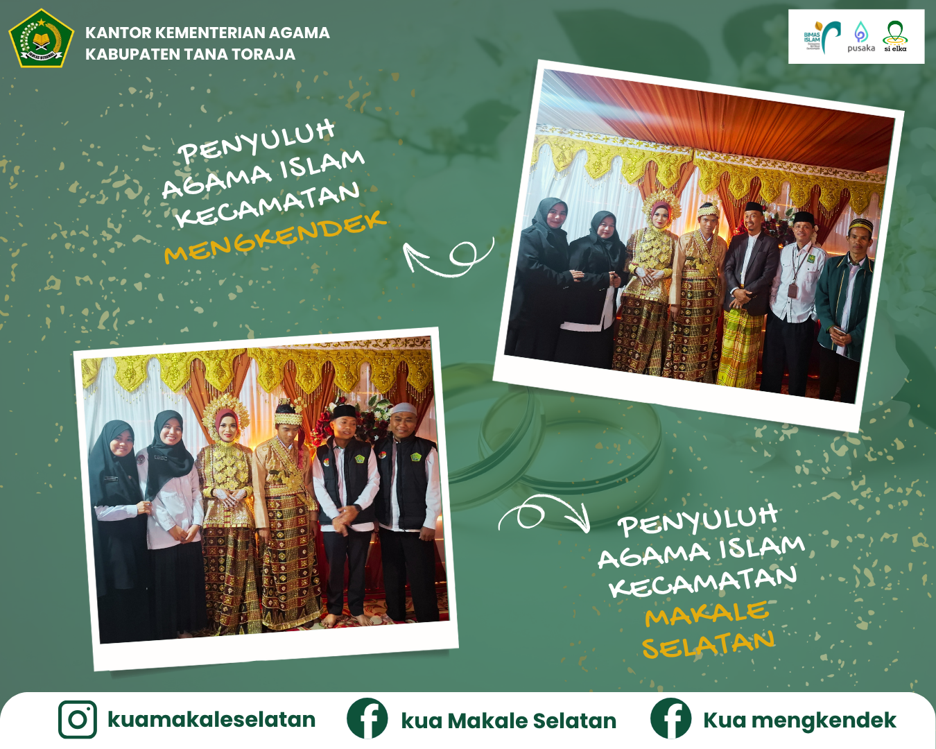 Acara sakral ini mempertemukan mempelai laki-laki, Rianto Pakka bin Mantiri, asal Makale Selatan, dengan mempelai perempuan, Mega Ria binti Syarifuddin, asal Mengkendek. Prosesi akad nikah dihadiri oleh penyuluh agama Islam dari Kecamatan Makale Selatan dan Mengkendek, serta didampingi langsung oleh Kepala KUA Kecamatan Mengkendek.