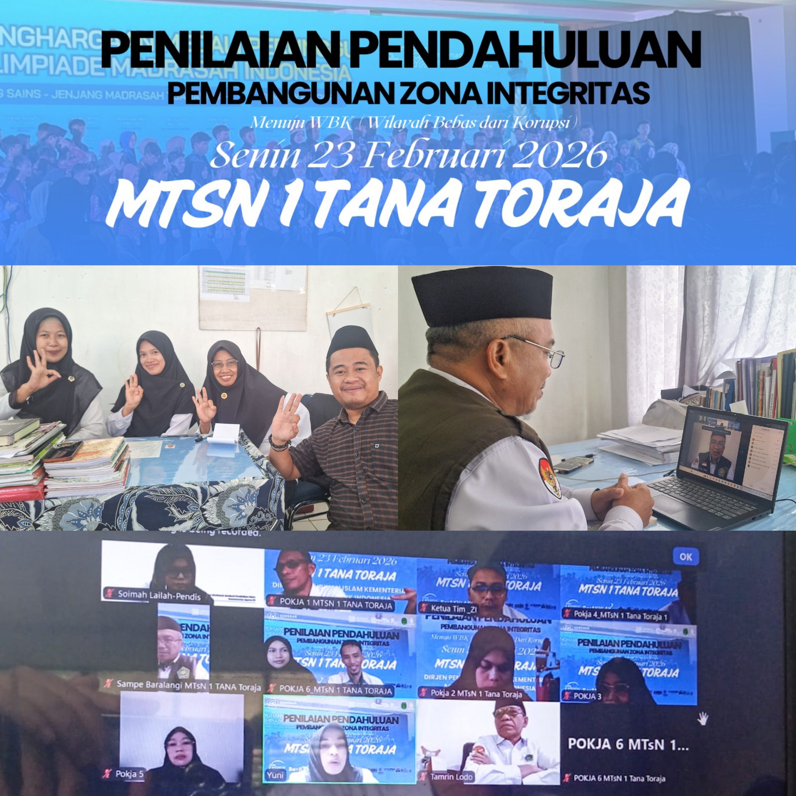 (Makale, Humas MTsN 1)__MTsN 1 Tana Toraja mengikuti kegiatan penilaian pendahuluan pembangunan Zona Integritas (ZI) unit Direktorat Jenderal Pendidikan Islam Kementerian Agama pada Senin, 23 Februari 2025.